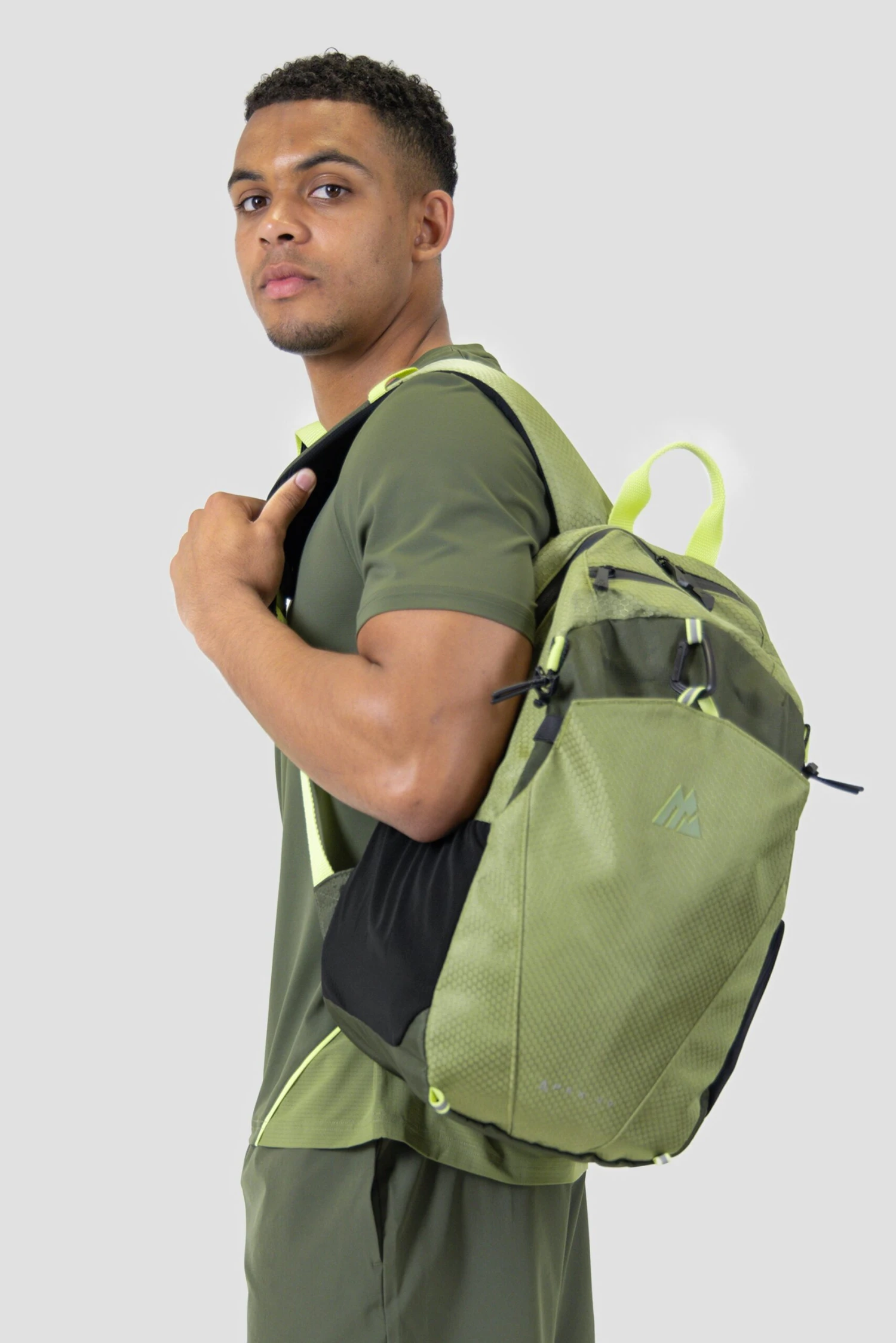 The Apex 2.0 25L Backpack in Elm/Eden/Citrus boasts reflective detailing, an adjustable chest strap, and webbing loops for hiking pole storage. Improved ventilation and SAB zips offer enhanced comfort and durability. The front slip pocket and DWR coated fabric make it perfect for outdoor adventures.
